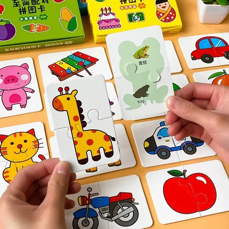 32Pcs Montessori Toddler Card Matching Game Early Education Puzzle Toys Cartoon Jigsaw Toys Color Shape Cognitive Training Gift