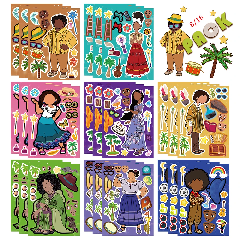 8/16sheets Disney Anime Encanto Puzzle Stickers Make A Face Funny Children Game Decals Assemble Jigsaw Educational Toys Sticker