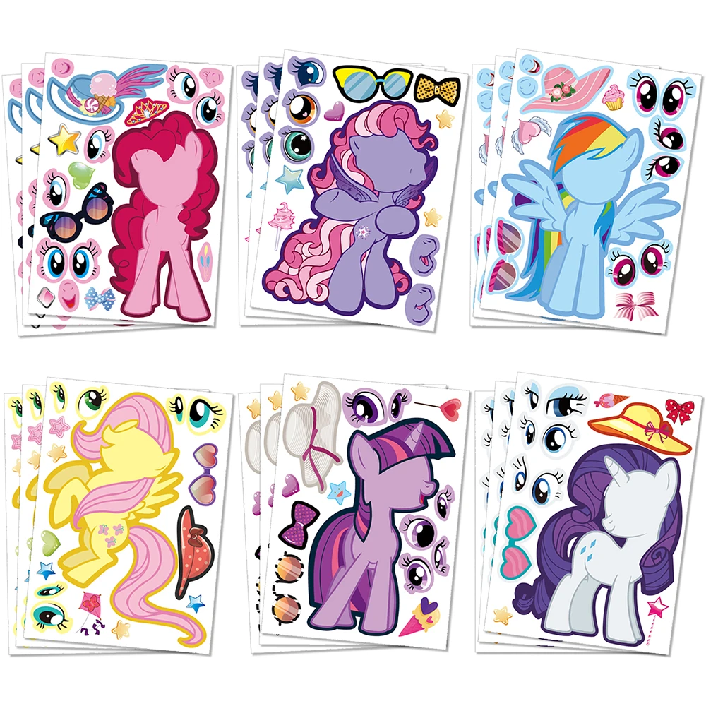 6/12Sheets DIY Pony Puzzle Stickers Make a Face Cute Unicorn Cartoon Children Game Creative Assemble Jigsaw Toys For Kids Girls
