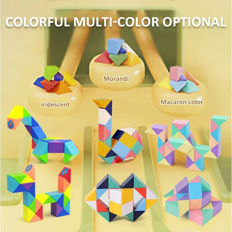 3D Puzzle Fidget Toys, Transformable Magic Cube & Snake, 24-72 Segments, Educational Toys for Kids, Stress Relief Cubes