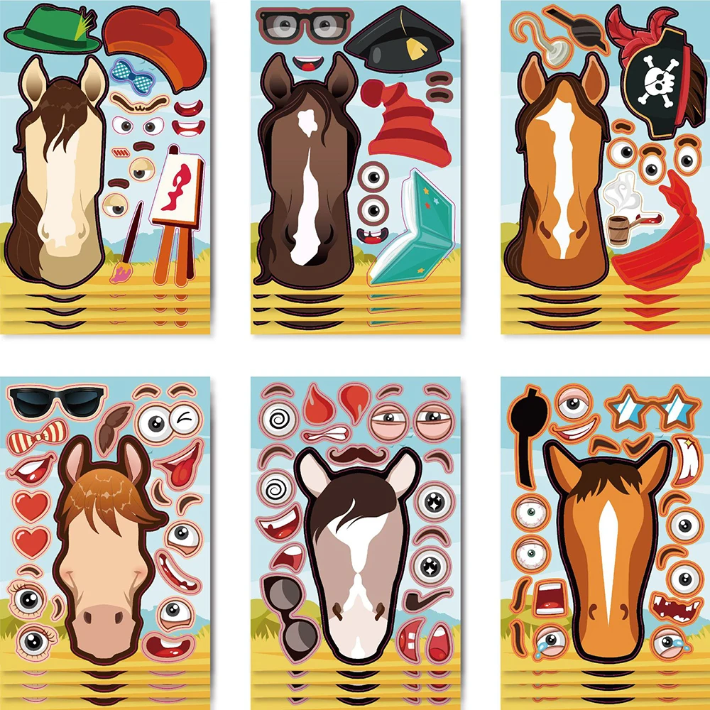 6/12Sheets Make a Face Elf Horse Puzzle Sticker Game DIY Funny Animal Assemble Jigsaw Children Educational Toys Gifts For Kids