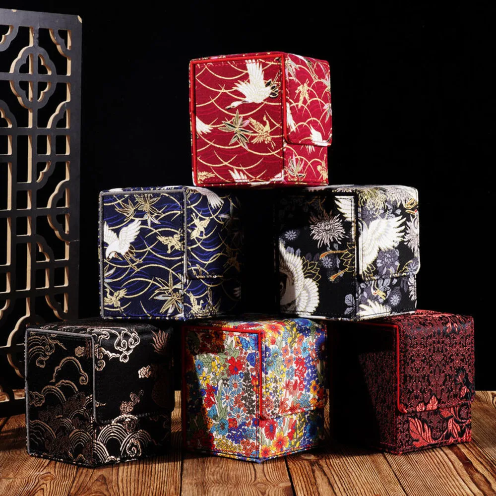 100+ Card Storage Box With Display Window Embroidery Style Silk Fabric MTG TCG Trading Card Board Game Organizer Case Gifts