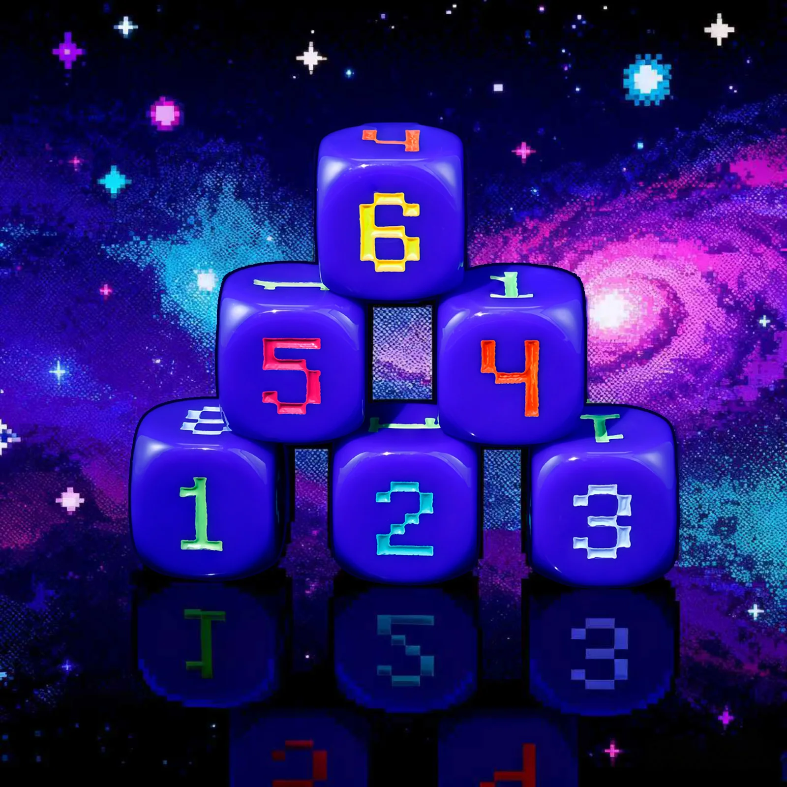 6-Piece 6-Sided Numbered Dice Set – Blue Body & Multicolored Numbers, for Yard Outdoor Games & Gatherings, Includes Storage Draw