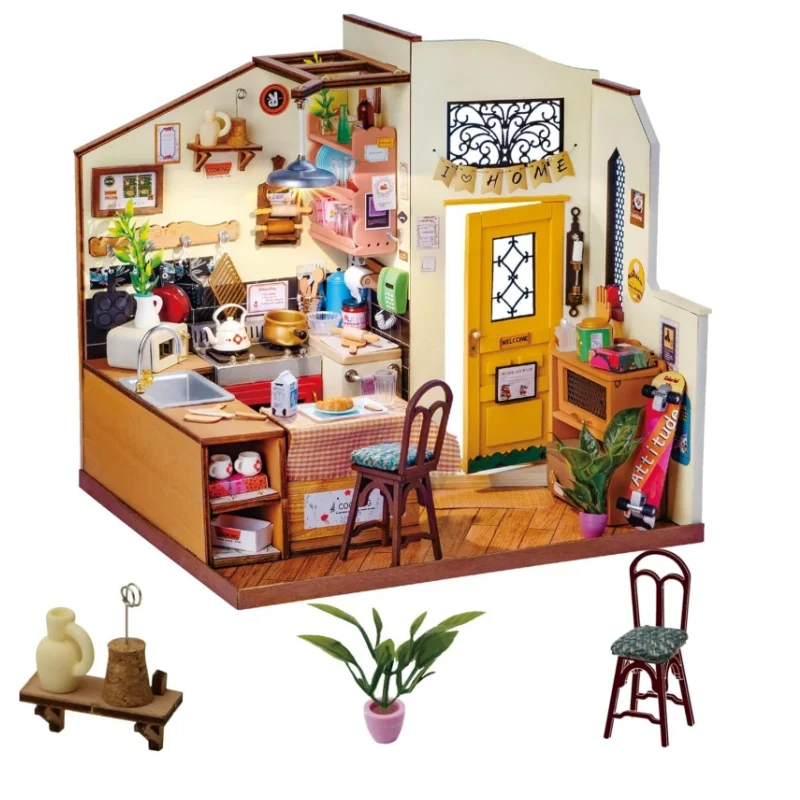 Robotime Rolife Cozy Kitchen 3D Wooden Puzzle DIY Miniature House Kit Gift For Kids DG159