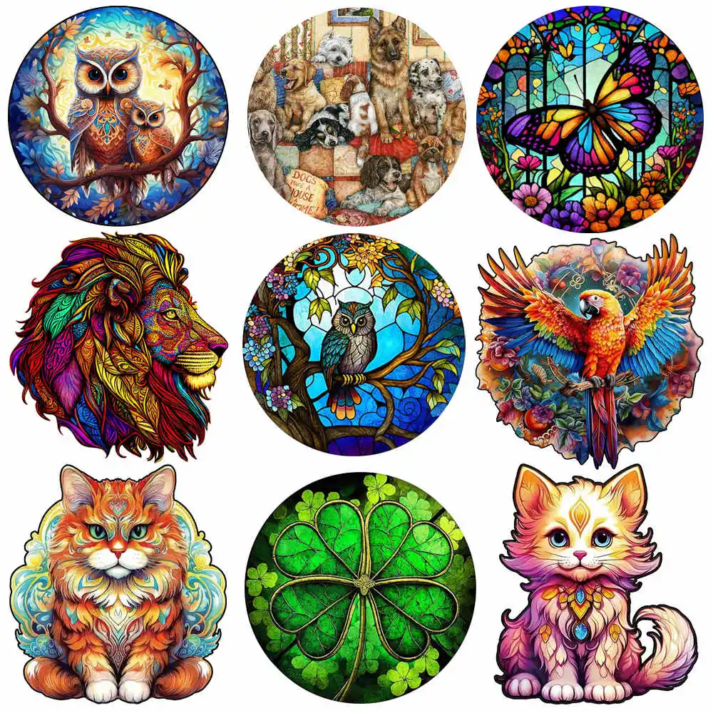 Top Quality 3D Jigsaw Wooden Puzzles pig cat Animal Shape jigsaws for Adults Kid Toys Gifts Family Puzzle Game Home Decoration