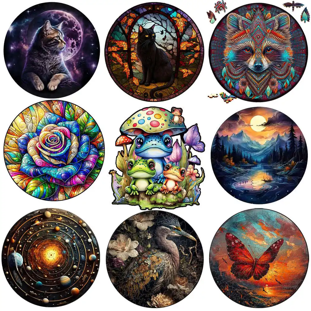frog Wooden animal Puzzle cat circular Wooden jigsaws Interesting Diy Draft For Kids Adults 3d Puzzle Brain Games