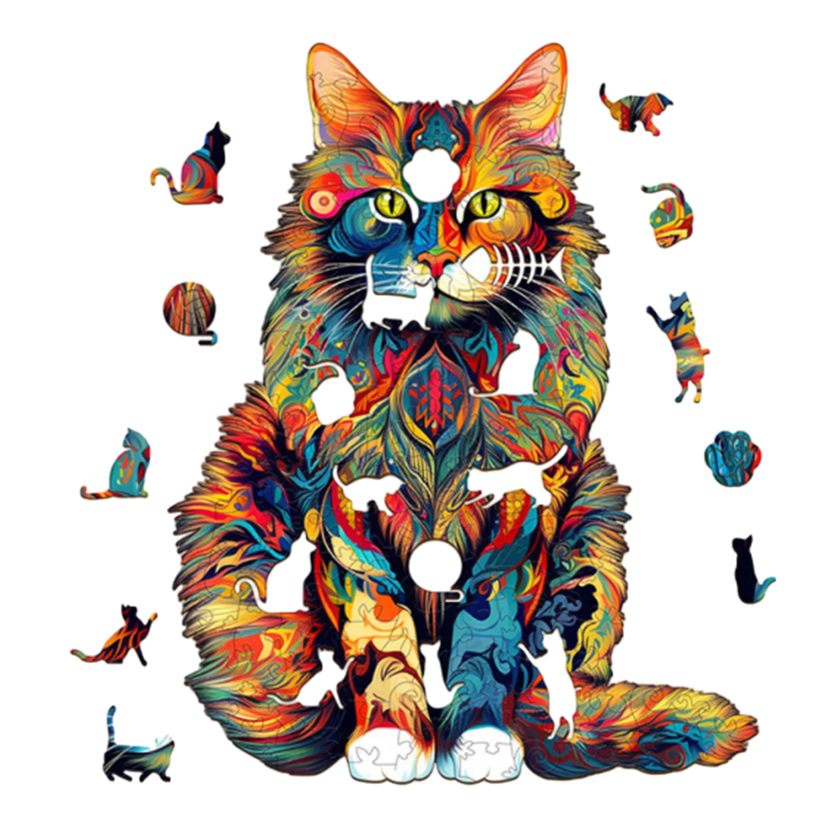 Cat Pattern Wooden Puzzle Animal Shape Wood Puzzles unique Cat Shapes Jigsaw puzzle Alien Animal Jigsaw Puzzle Educational Toys