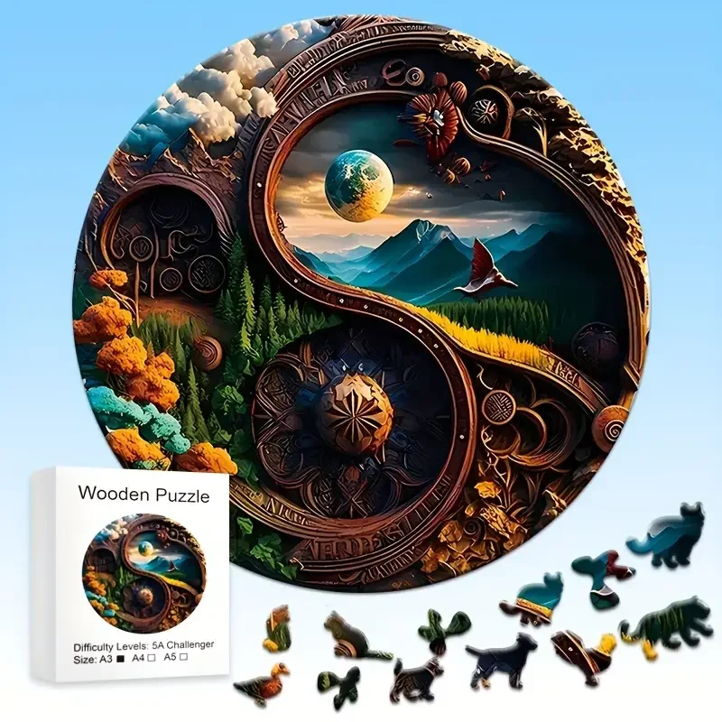 Yin-yang Landscape Wooden Puzzle, Uniquely Irregular Animal Shaped Wooden Stress Relief Toy