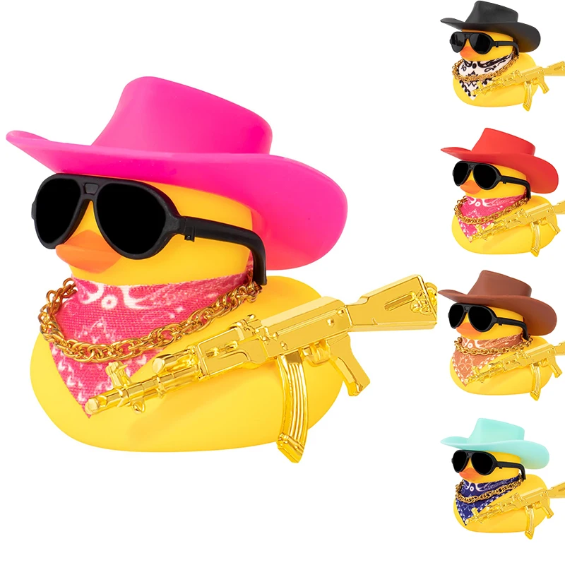 Rubber Duck Car Ornaments Duck Car Dashboard Decorations for Cool Car Accessories with Cowboy Hat Necklace and Sunglasses