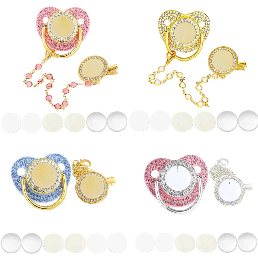 Blank Baby Pacifier Clip Holder Set Luxury Silicone Newborn Dummy Infant Teether Personalized Soother Baby Shower Gift