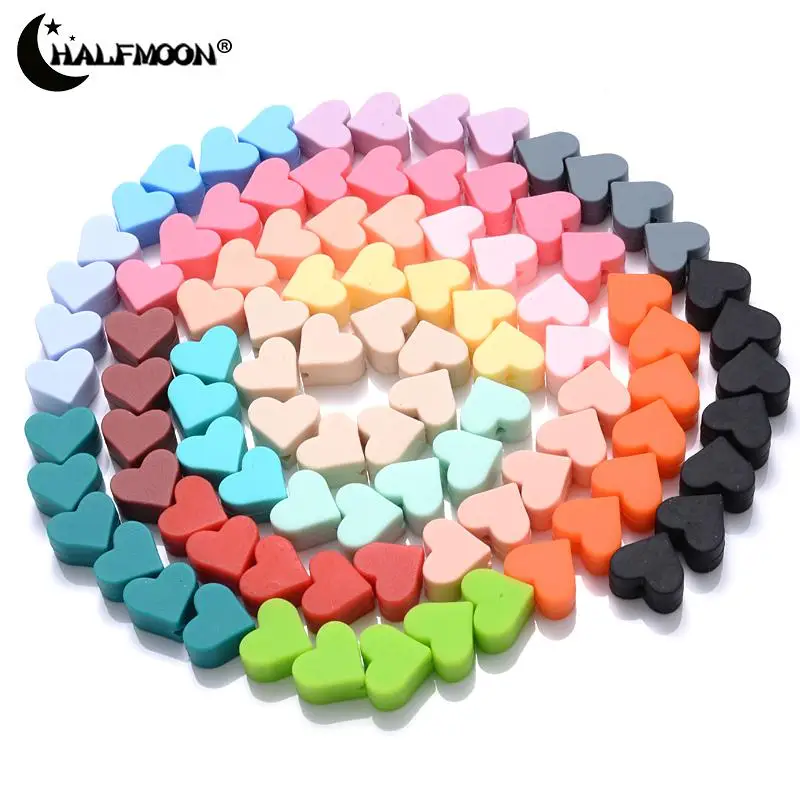 14mm 10Pcs Heart Shape Silicone Beads Baby Nursing Chewable Teething Beads Pacifier Teether DIY Necklace Accessories BPA Free