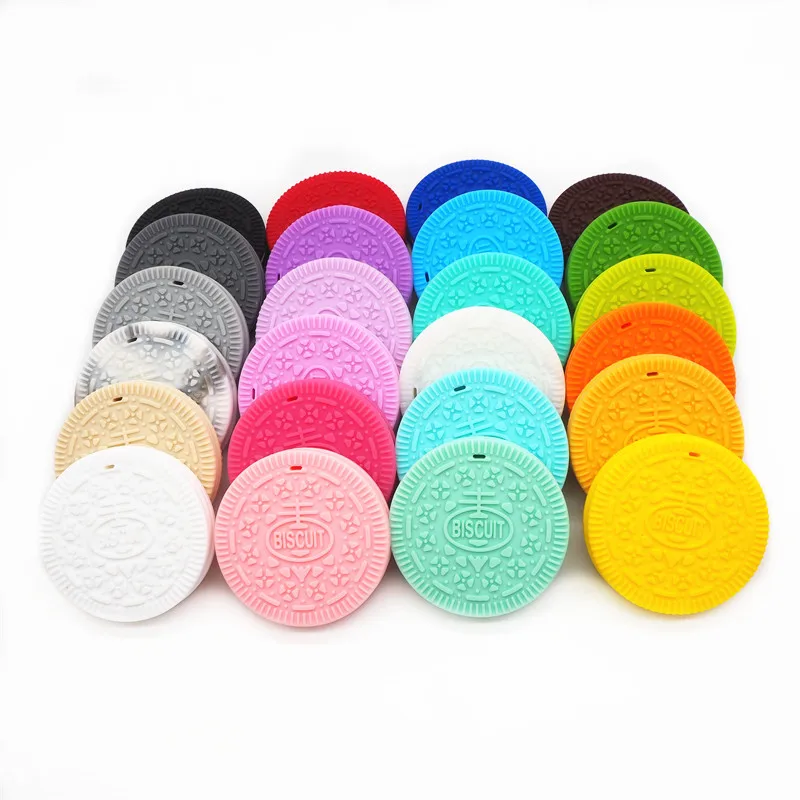 Chenkai 50PCS BPA Free Silicone Cookie Pendant Teether DIY Baby Biscuit Pacifier Dummy Pendant Nursing Chewing Jewelry Toy Gift
