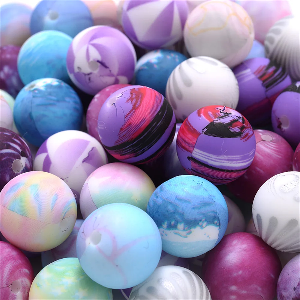 10Pcs 15mm New Round Printed Silicone Beads Teether Beads For Pacifier Chain DIY Necklace Bracelet Jewelry Accessories