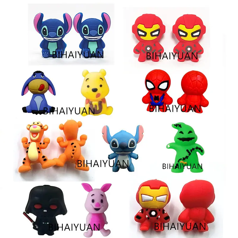 5pcs Winnie the pooh super hero Stitch 3D focal Silicone beads Teether Jewelry Beads Food Grade For pen Pacifier Chain