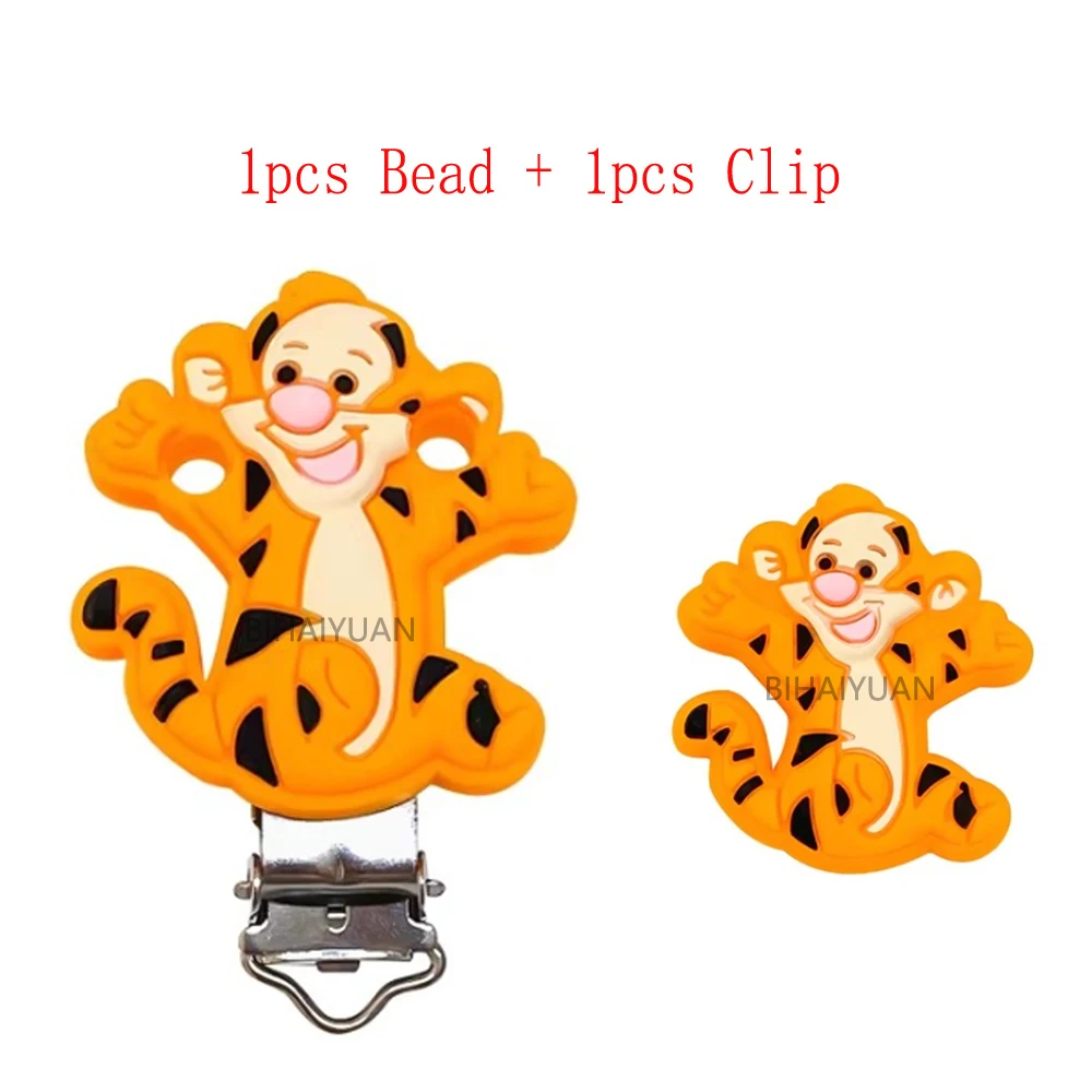 2pcs one set Silicone princess winnie the pooh Tigger marie cat Beads and Pacifier clip Baby Teether Food Grade For Clip Teether