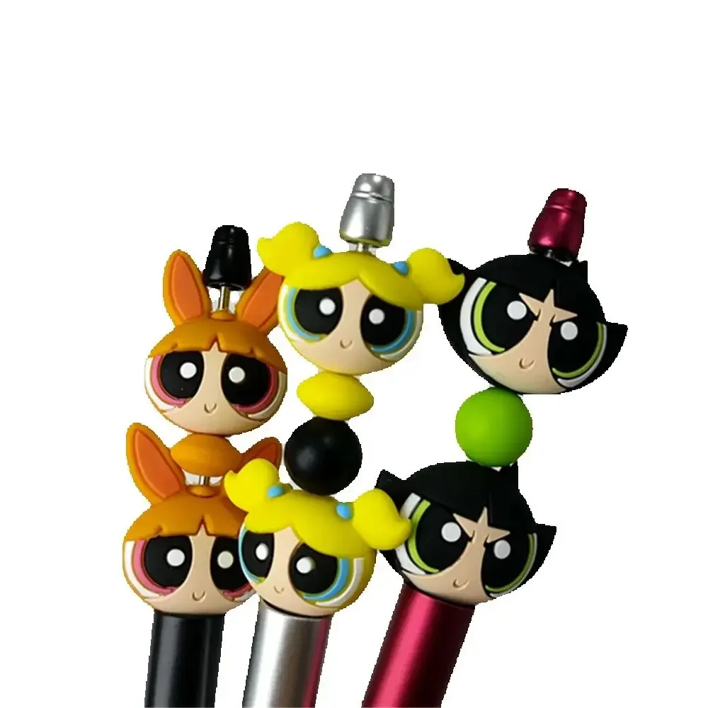 5pcs Powerpuff Girls Blossom Buttercup Bubbles 3D focal Silicone beads Teether Jewelry Beads Food Grade For pen Pacifier Chain