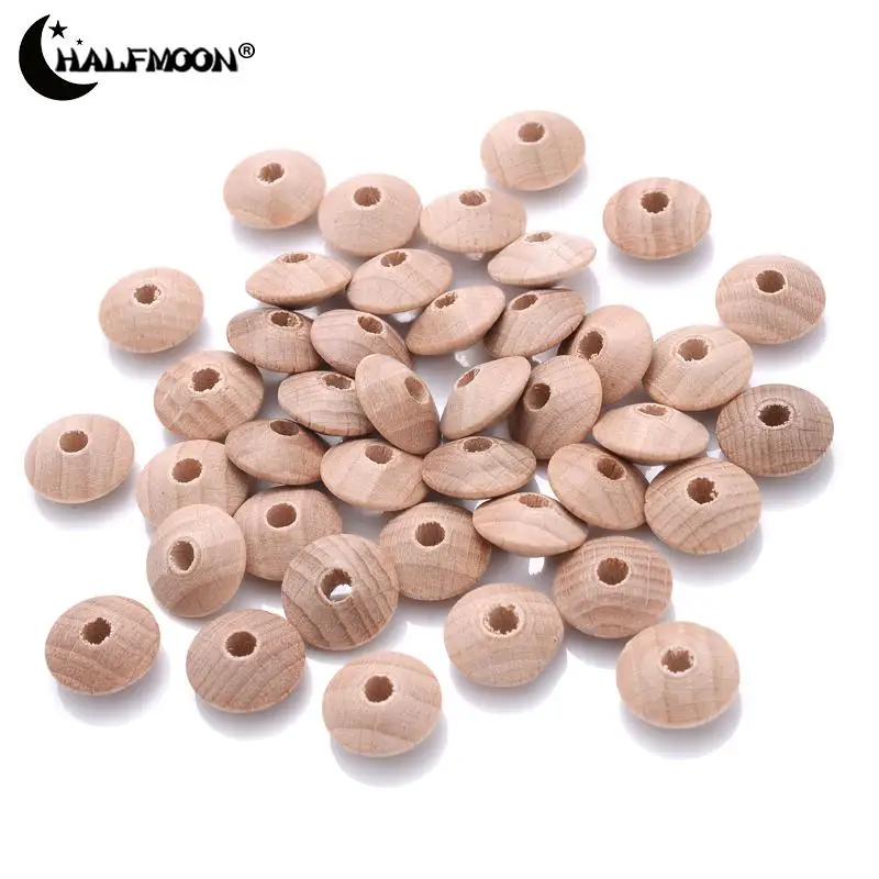 50pcs 12/14mm Natural Wood Bead Beech Wooden Abacus Beads for Teether Clips Nursing Toy Shower Gift DIY Pacifier Chain Accessory