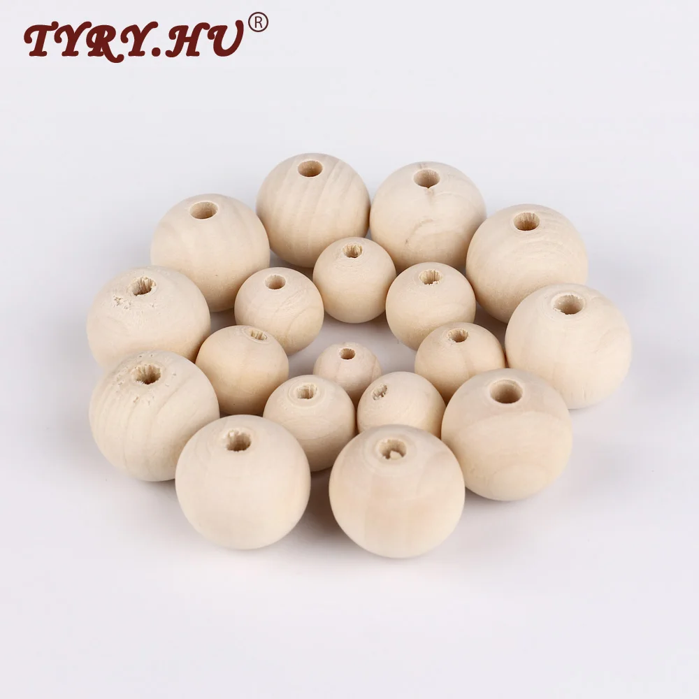 TYRY.HU 20Pc/lot Wooden Teething Beads Baby Teething Pendant Necklace Eco-frinedly Baby Chewing Nursing Toys 10mm 14mm 18mm 25mm