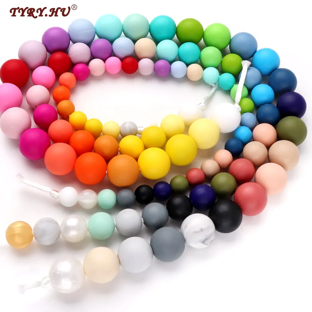 TYRY.HU 100pc 9/12/15mm Silicone Beads Food Grade Baby Chewable Teething Beads Safe Nursing For Baby Jewelry Making Necklace DIY