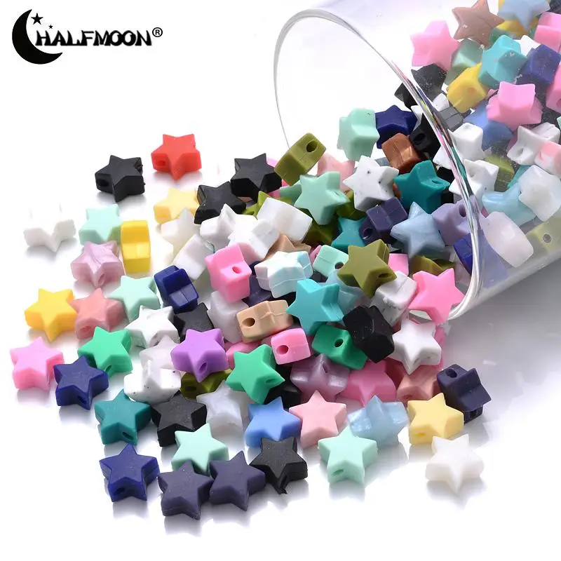 10Pcs 14mm Silicone Beads Food Grade Pearl Silicone Five-pointed Star Teething Pacifier Dummy Baby Teether Beads Accessories