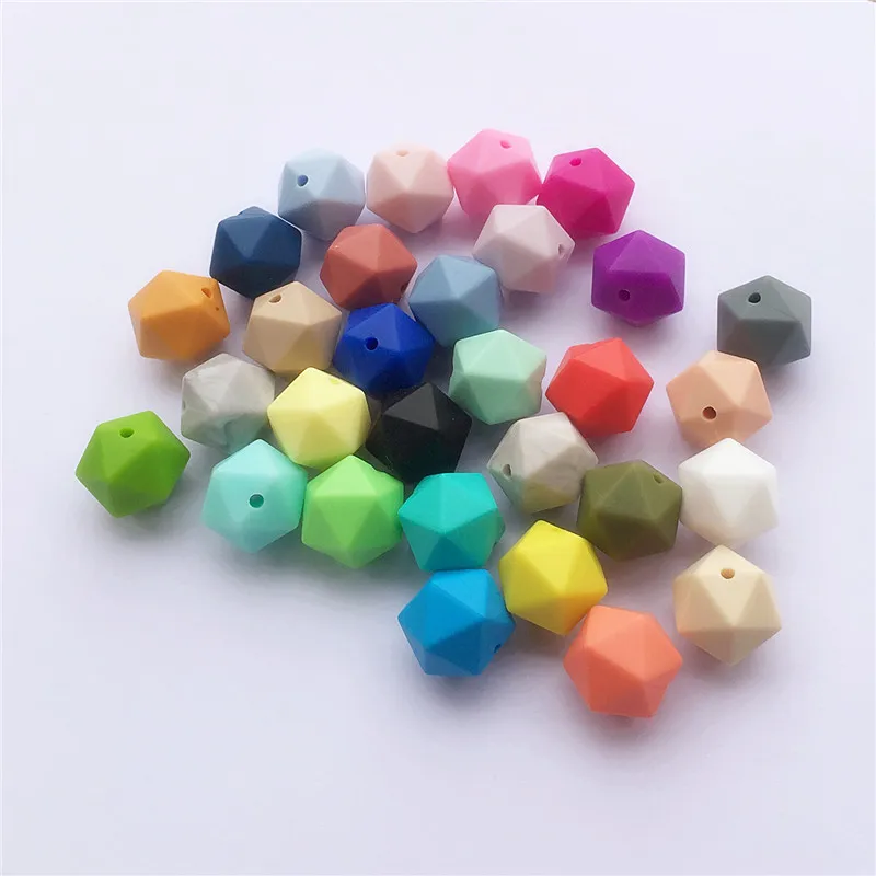 Chengkai 100pcs 14mm Silicone Icosahedron Teether Beads DIY Baby 20 side Beads Pacifier Teether Sensory Jewelry Toy Accessories