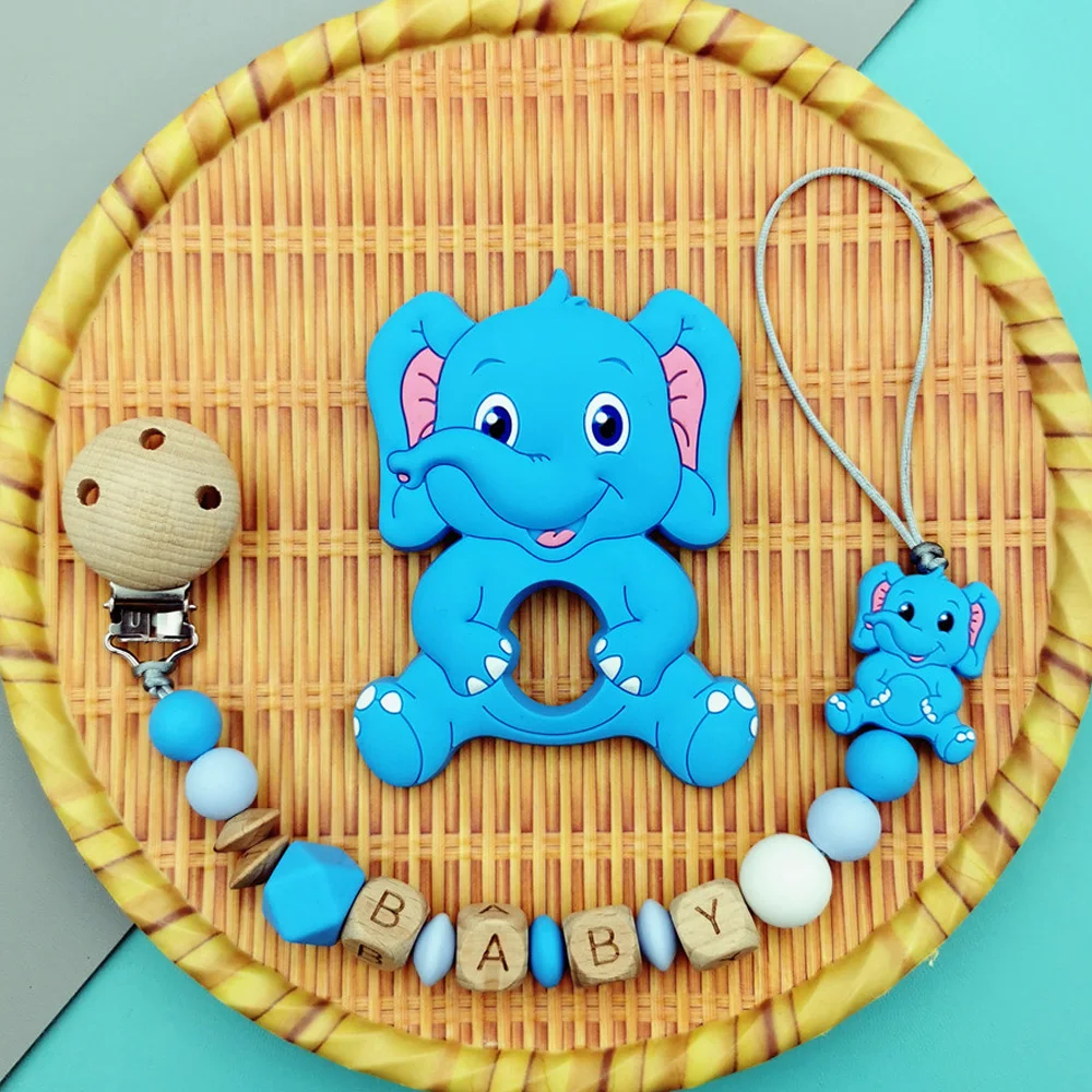 Custom Letter Names Elephant Pacifier Clip Chain Pendants for Baby Infant Chew Leash Nipple Holder Teether Creative Gift