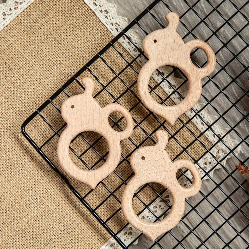10pc Baby Wooden Teether Beech Bee Pacifier Teeth Pendant Wooden Baby Gym Toys Montessori Animals Baby Products Newborn Gift Kid