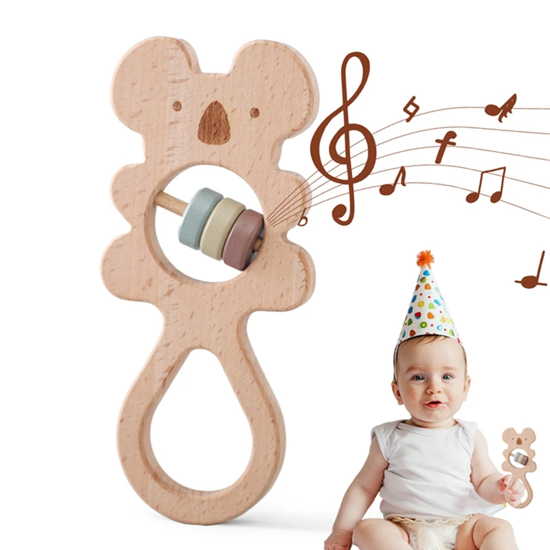 Baby toys 0 12 Months Wooden Rattle Sensory Toys for Baby Montessori Baby stroller Cartoon Koala Hand Bell Infant Wooden Teether