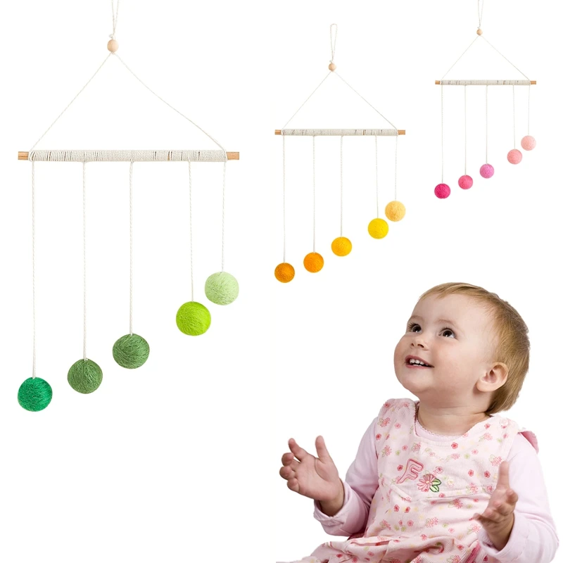 Baby Montessori Plush Ball Pendant Colorful Mobile Hanging Crib Toy Kids Visual Sensory Game Color Cognitive Educational Toys