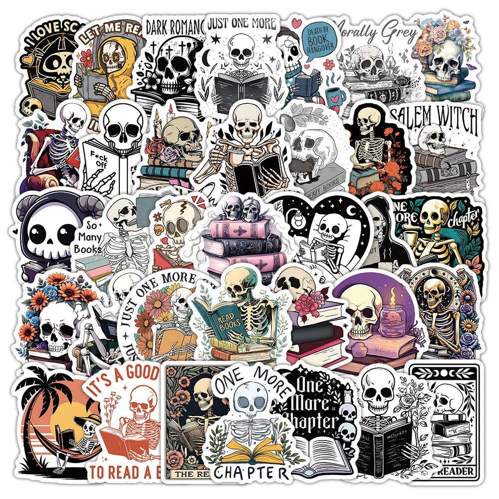 50PCS Creative Skeleton Read Horror Thriller Waterproof Stickers Decoration Notebook Mobile Water Cup Suitcase Graffiti Toys