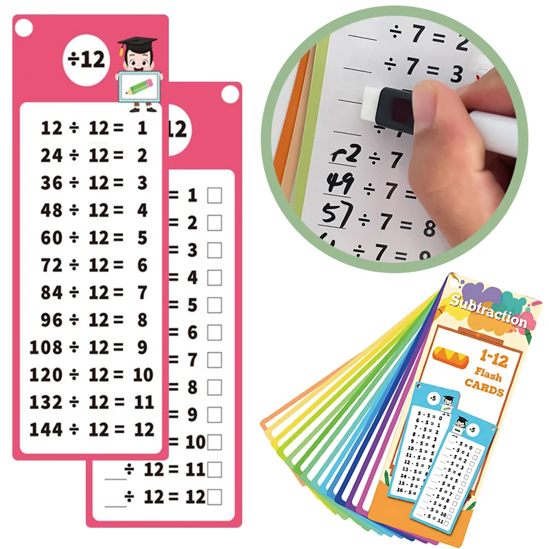 1-12 Maths Training Cards Addition Subtraction Multiplication and Division Educational Toys Student Arithmetic with Erasable Pen