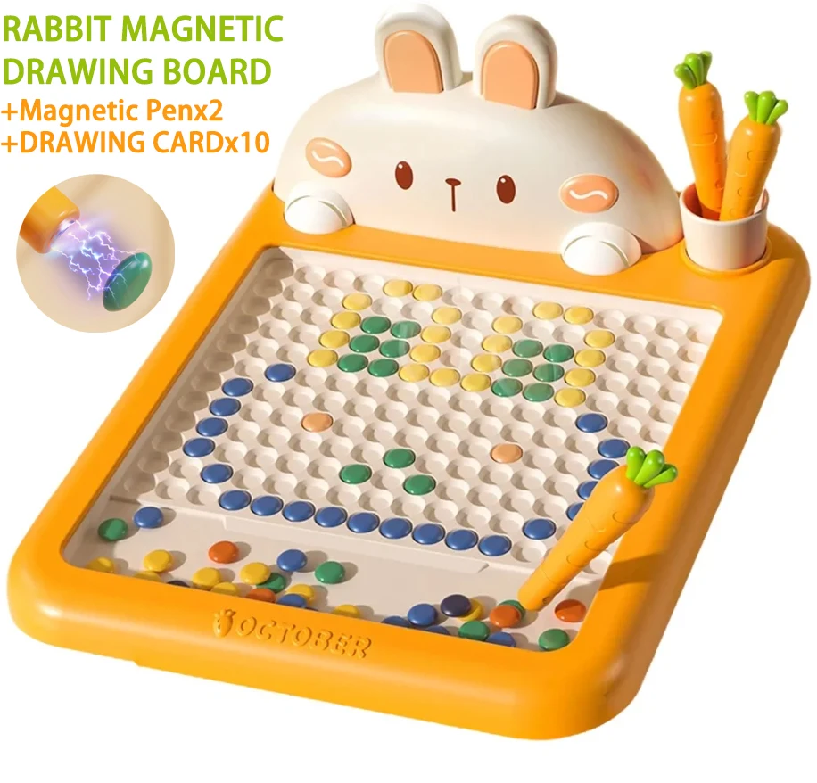 Rabbit Magnetic Drawing Board Children Drawing Board Magnetic Beads Radish Pen Graffiti Board Early Education Montessori Toy