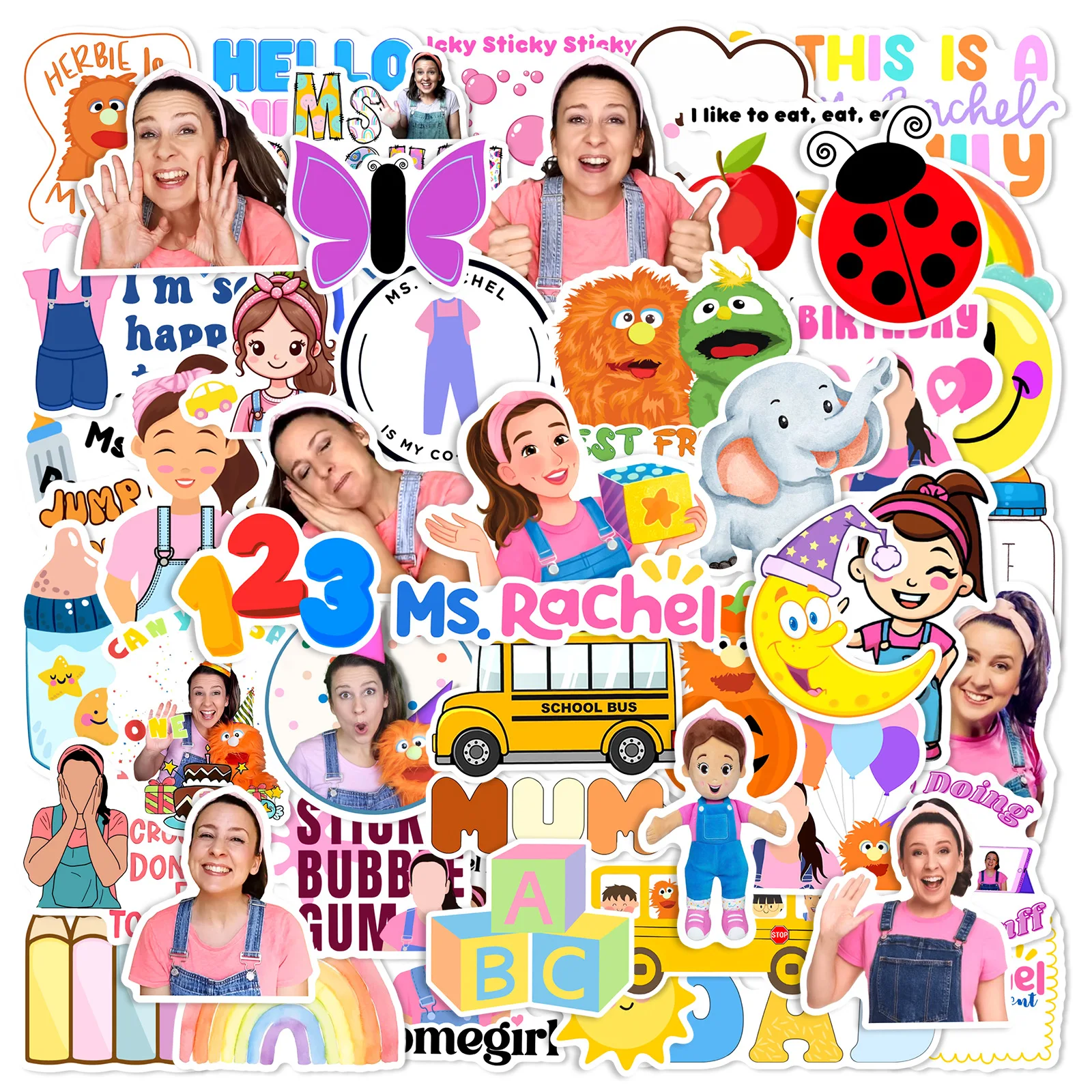 10/30/50PCS Ms.Rachel Early Childhood Education Sticker Decals Toys DIY Suitcase Skateboard Phone Luggage Bike Sticker Gift
