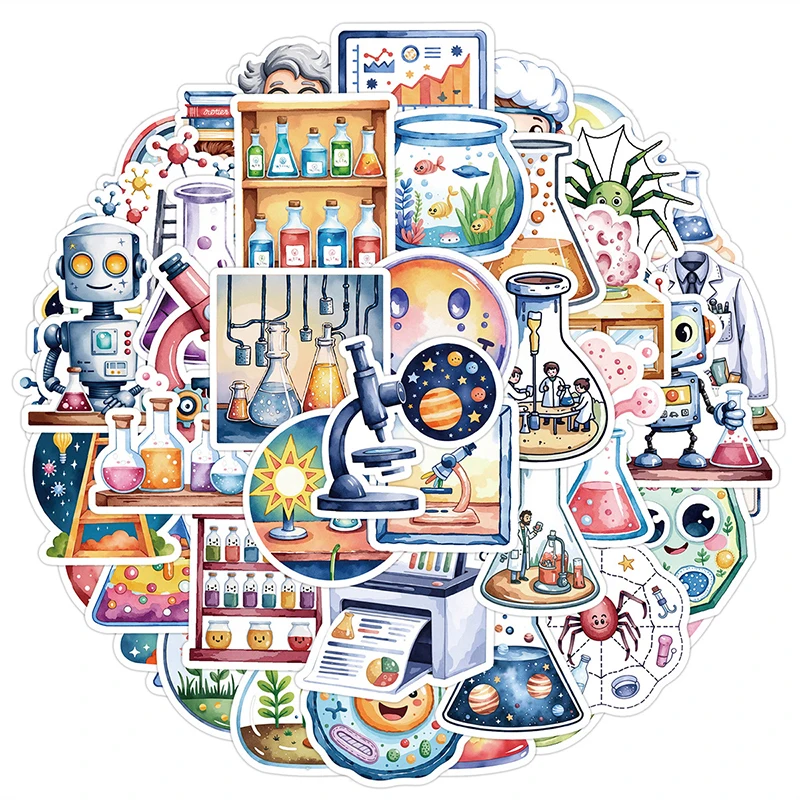 50PCS Natural Sciences Stickers Pack Chemistry, Biology, Physics, Science Classroom Decor Student Laboratory Decals Waterproof