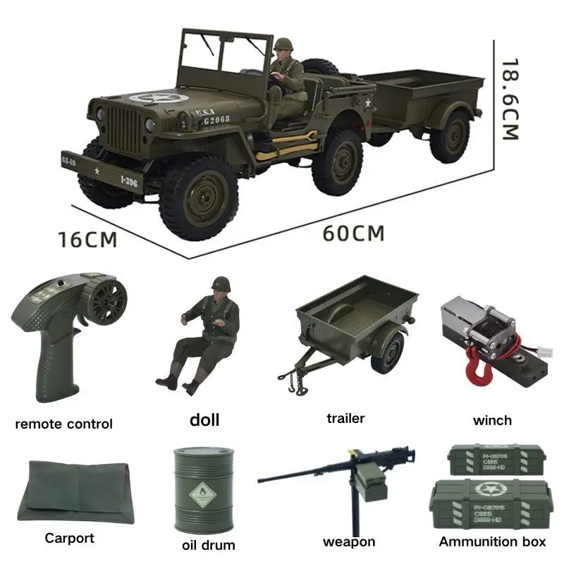JJRC C8815 Rc car 1941 JEEP WILLYS 2.4g 4wd RTR Crawler climbing scale military truck off-road vehicle toy gift for children.  Read more