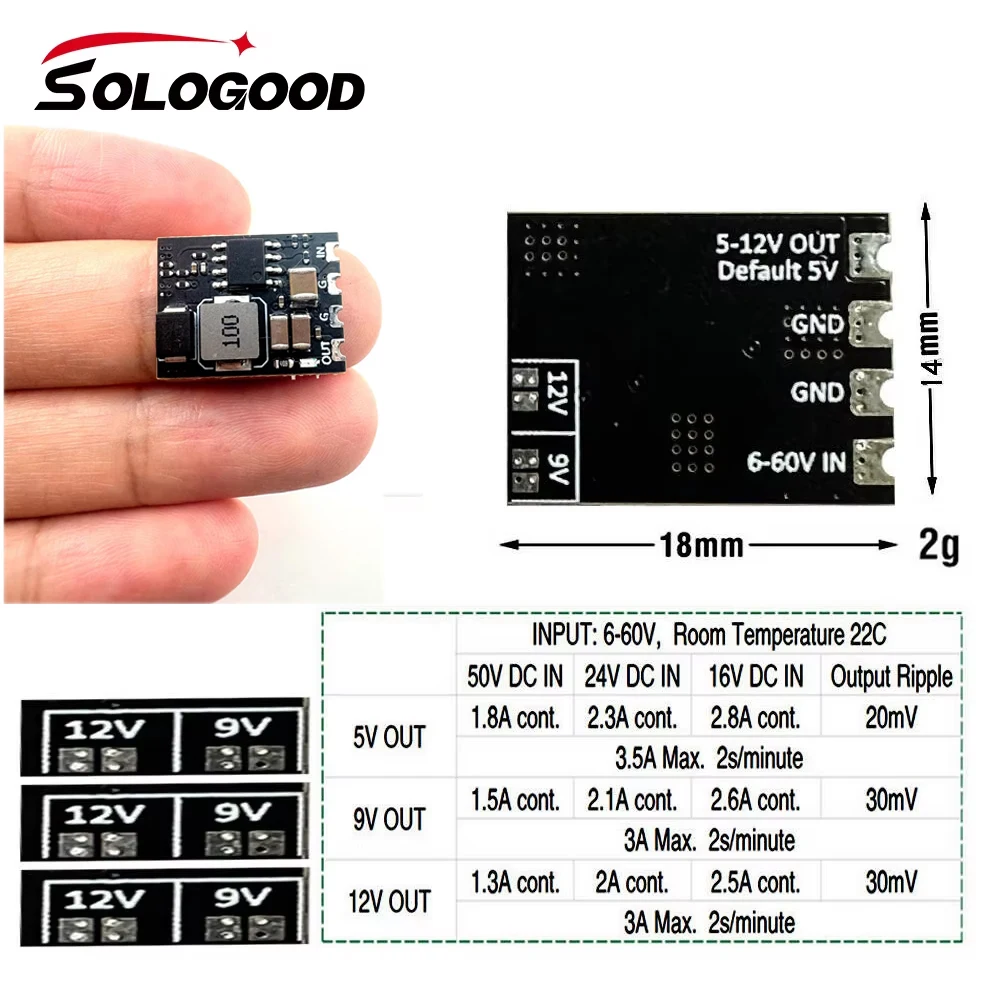 SoloGood 6-60V MICRO BEC TO 5V/9V/12V-ADJ 18*14mm for RC Model Airplane Helicopter FPV Racing Drones DIY Parts