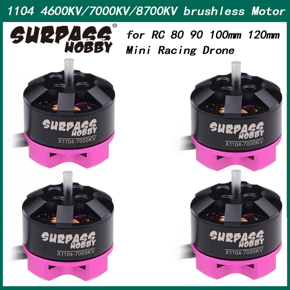 4PCS Surpass Hobby 1104 4600KV 7000KV 8700KV Brushless Motor 2-3S Lipo for RC 80 90 100 mm Mini Racing Drone Parts