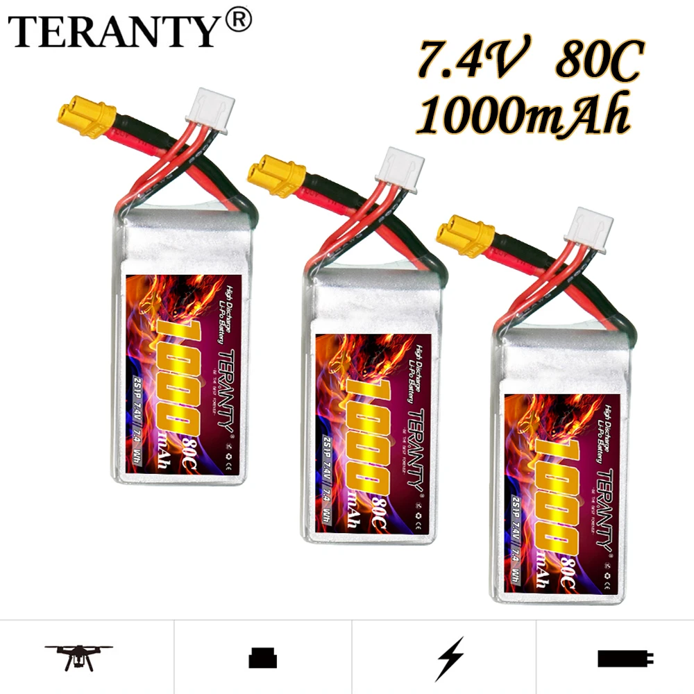 TERANTY 7.4V 2S 1000mAh 80C/160C Lipo Battery For RC Helicopter Quadcopter FPV Racing Drone Parts With XT30 7.4V Battery