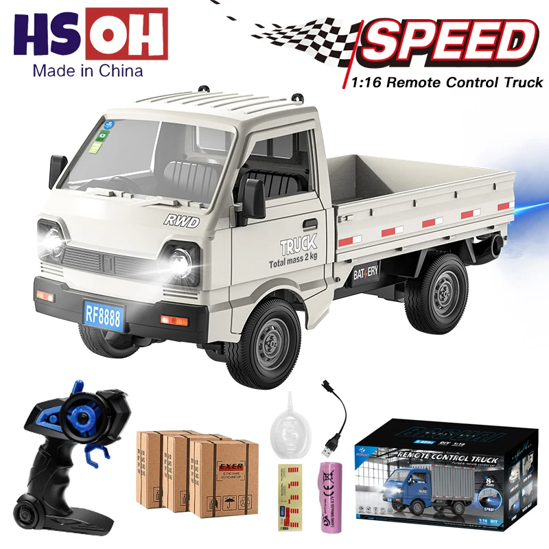 1:16 RC Car Drift Spray-on Type Climbing Truck Haul Cargo Remote Control Electric Toy w/ Led Light Model For Kids Birthday Gift