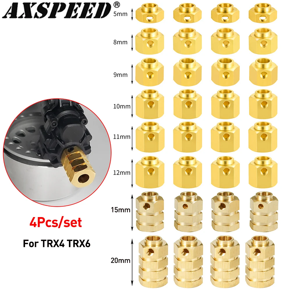 AXSPEED 4PCS Brass 12MM Wheel Hex Drive Adapter Extended 5/8/9/10/11/12/15/20mm for 1/10 RC Crawler Car TRX4 TRX6 Parts
