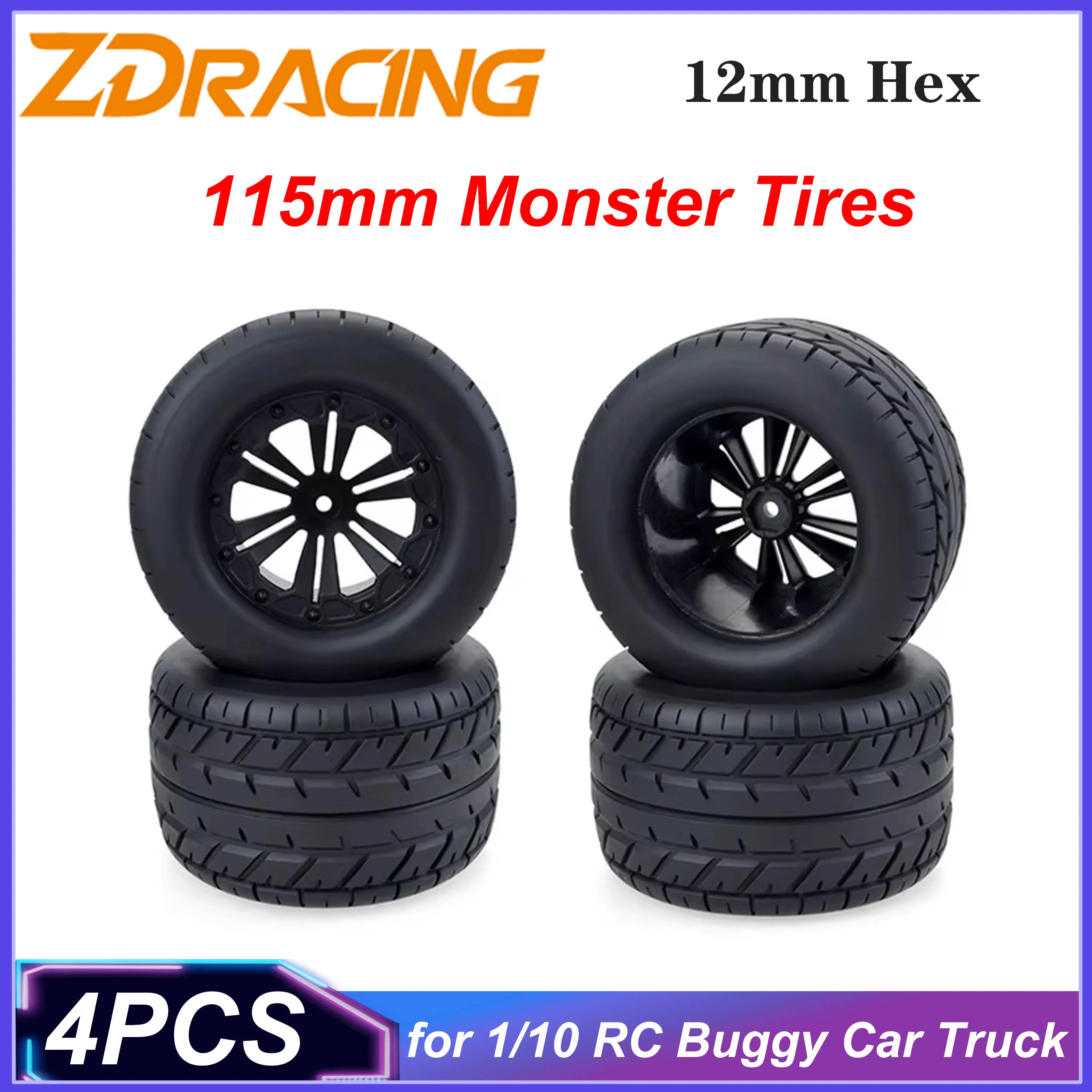 4PCS ZD Racing 115mm Monster Tires 12mm Hex Skidproof Wheel Tyre for 1/10 RC Buggy Car Truck HPI HSP Savage XS TM Flux LRP Parts