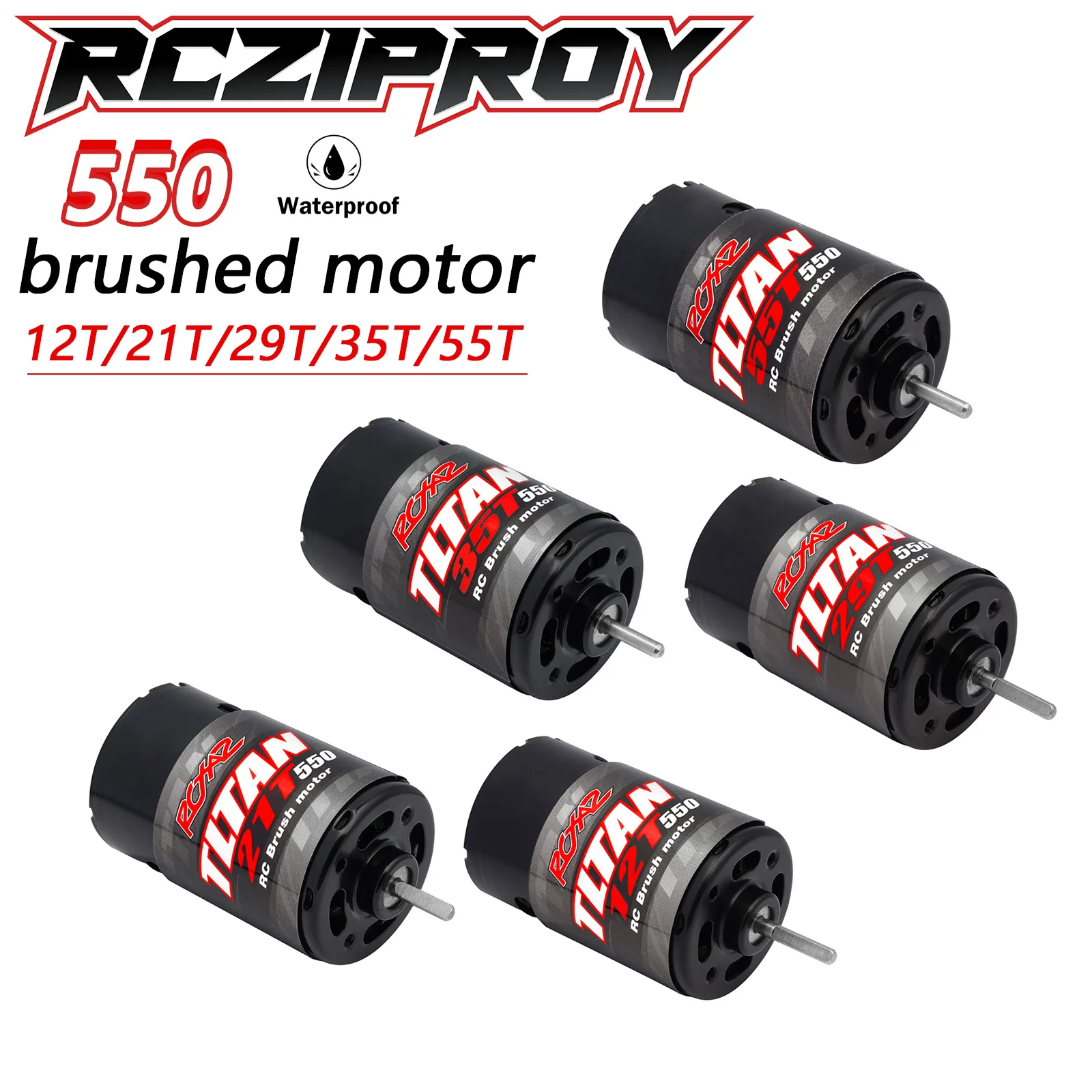 RCZIPROY 550 Brushed Motor 12T 21T 29T 35T 55T Waterproof Motor Suitable for 1/10 RC Crawler Axle SCX10 90046 TRX4 TRX6 RC Boat
