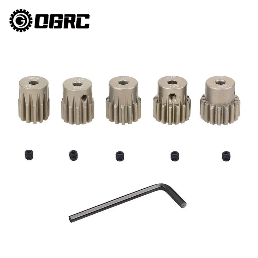 OGRC 32P 3.175mm 12T 13T 14T 15T 16T Pinion Motor Gear Set 5pcs with Hex Key for 1/10 RC Car Brushed Brushless Motor