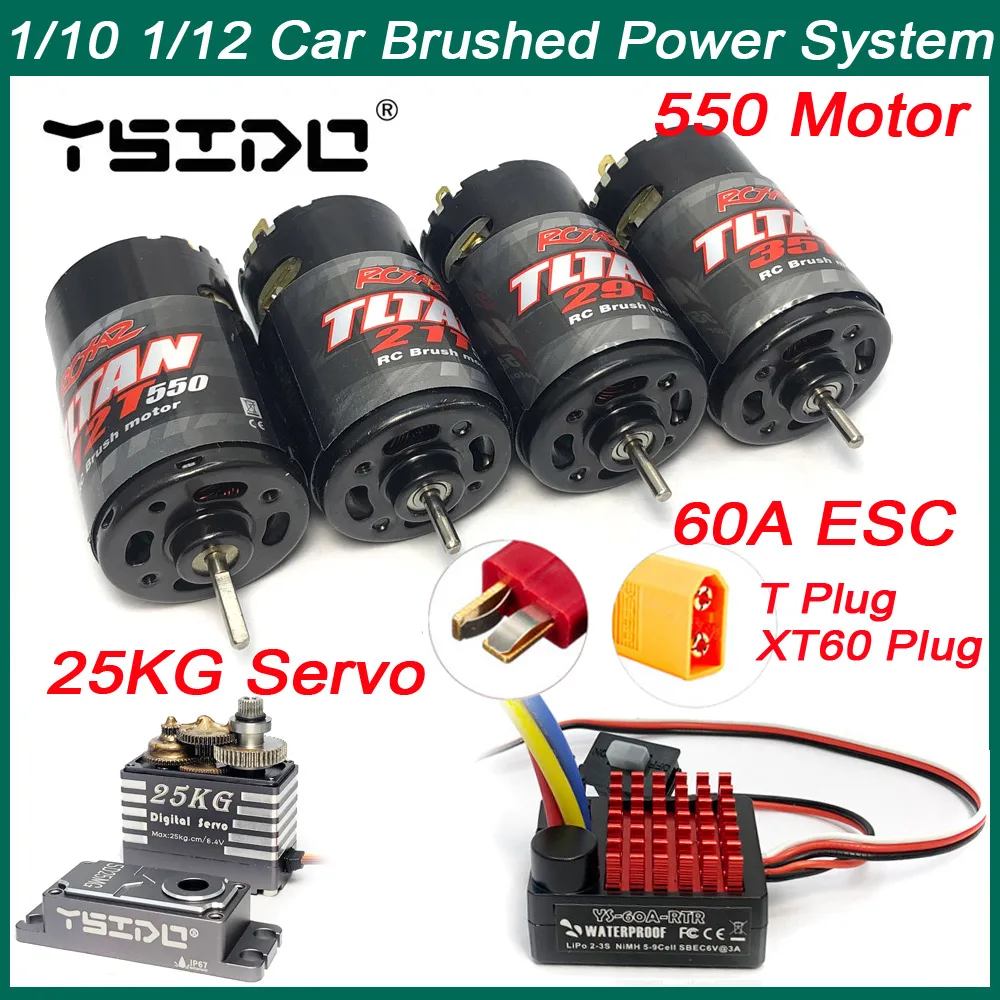 RC Car 550 Brushed Motor 35T 21T 12T 29T 60A-RTR ESC 25kg Servo Combo for 1/10 RC Crawler Axial SCX10 AXI03007 90046 Traxxas