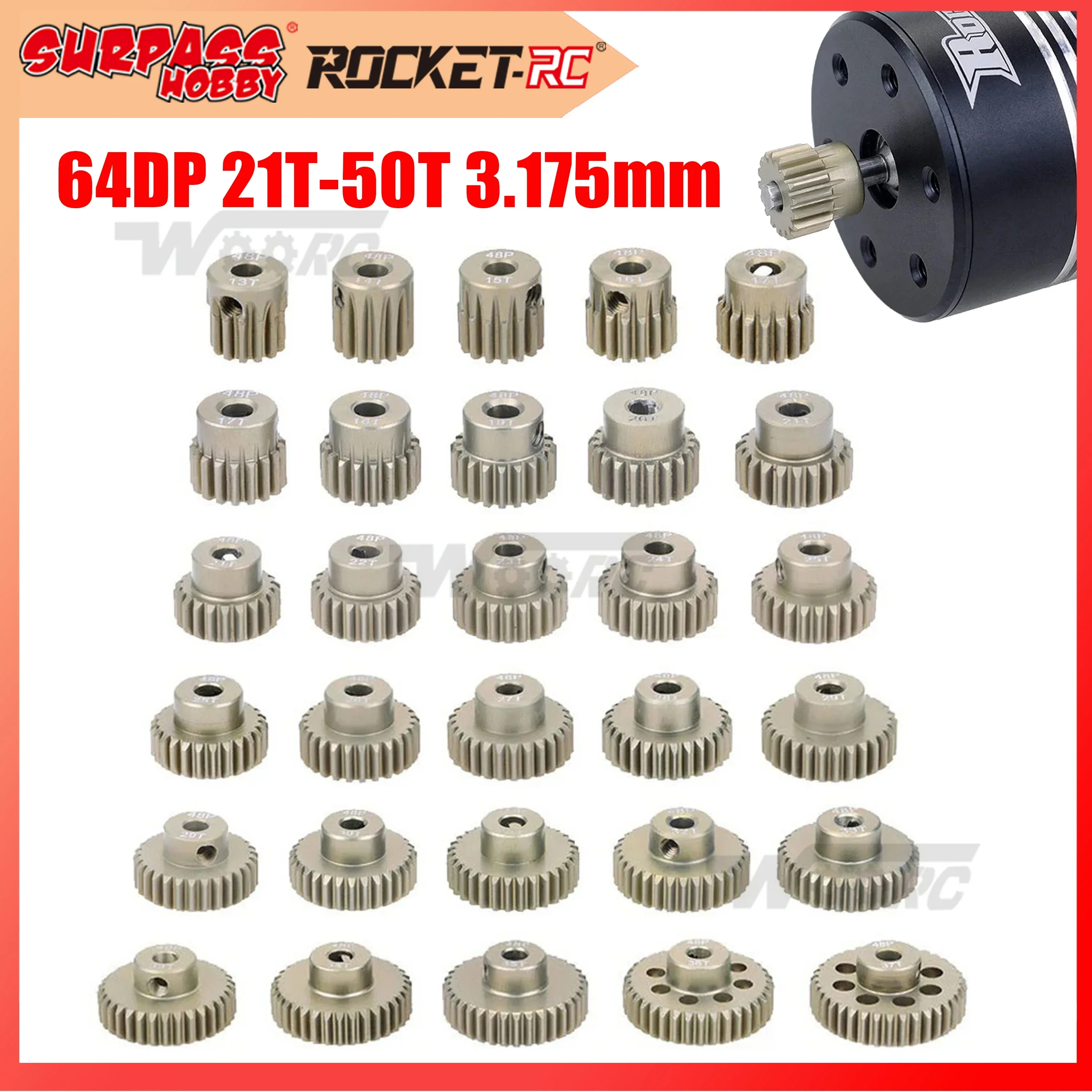 64DP 3.175mm 21T-25T 26T-30T 31T-35T 36T-40T 41T-45T 46T-50T Aluminum Alloy Metal Pinion Motor Gear for 1/10 RC Model Car Motor