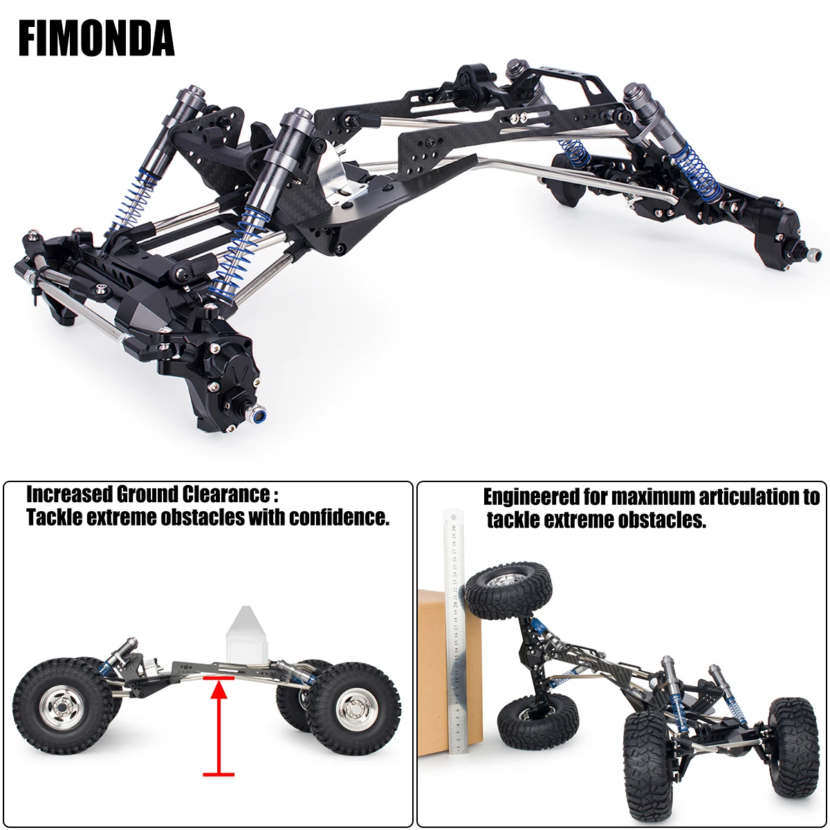 FX1 Carbon Fiber LCG Chassis Kit - High Clearance & Performance Upgrade with Gearbox & Shocks for 1/10 RC Crawler & Cheater Rigs