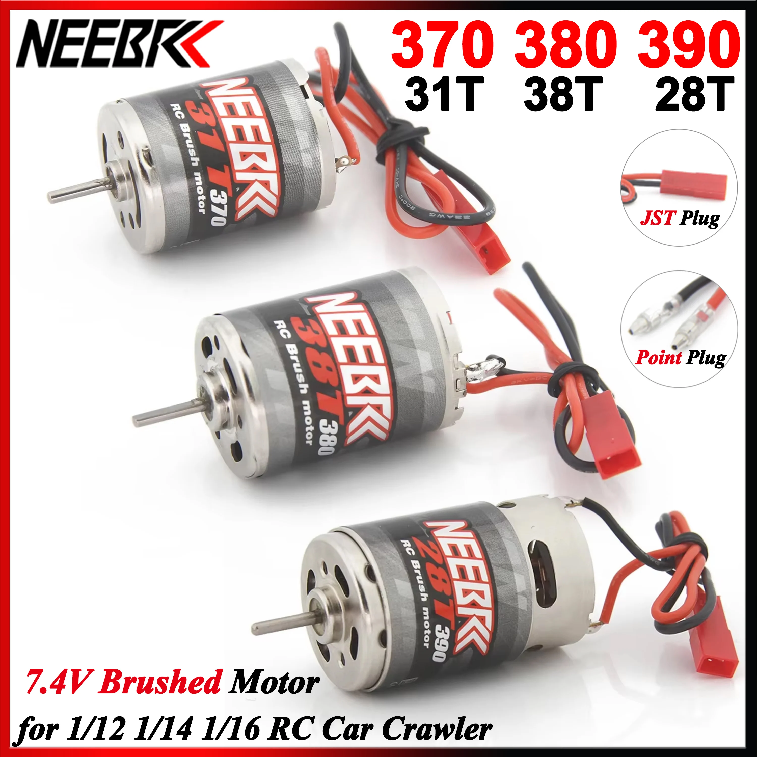 NEEBRC 370 380 390 JST Brushed Motor Stainless Steel for 1/12 1/14 1/16 1/24 RC Car Crawler Monster AXIAL SCX24 B17 TAM54393