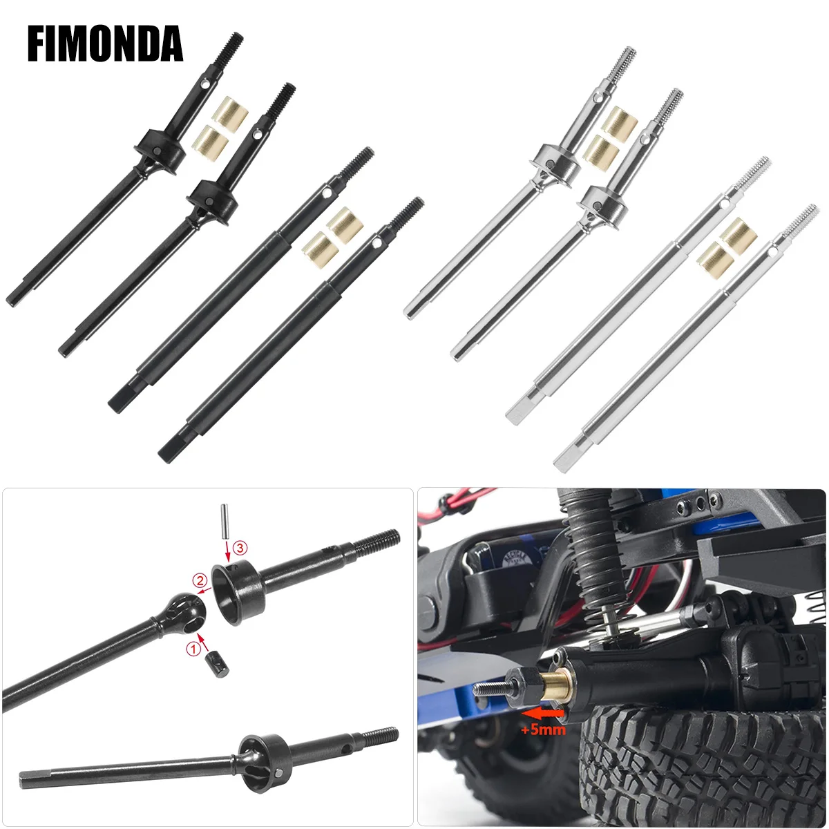 1/18 TRX4M RC Crawler Hardened Steel Driveshaft 5mm Extended Axle Shafts w +2mm Thread Front & Rear Upgrade Parts
