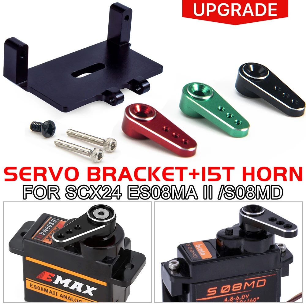 Metal Servo Mount 15T Arm for 1/24 RC Crawler Axial SCX24 Jeep Gladiator Upgrades Emax ES08MA II Servo Bracket Horn
