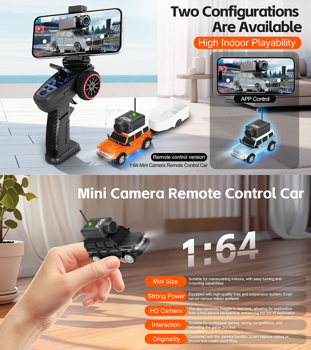 WLtoys RC Cars 1:64 Mini 6406 6406C HD Camera RC Racing Car Toy 120° Wide Angle 2.4G 720P APP Control Mini Car Dual Control